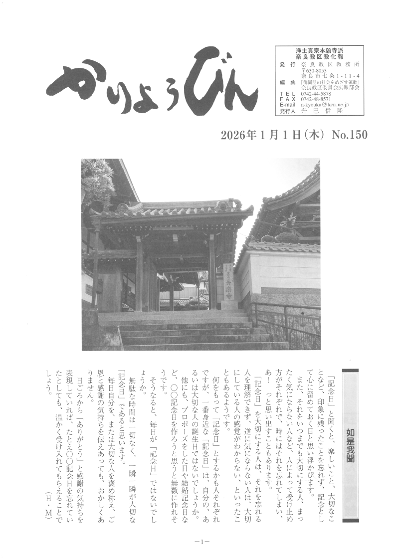 【奈良教区教化報 『かりょうびん』】